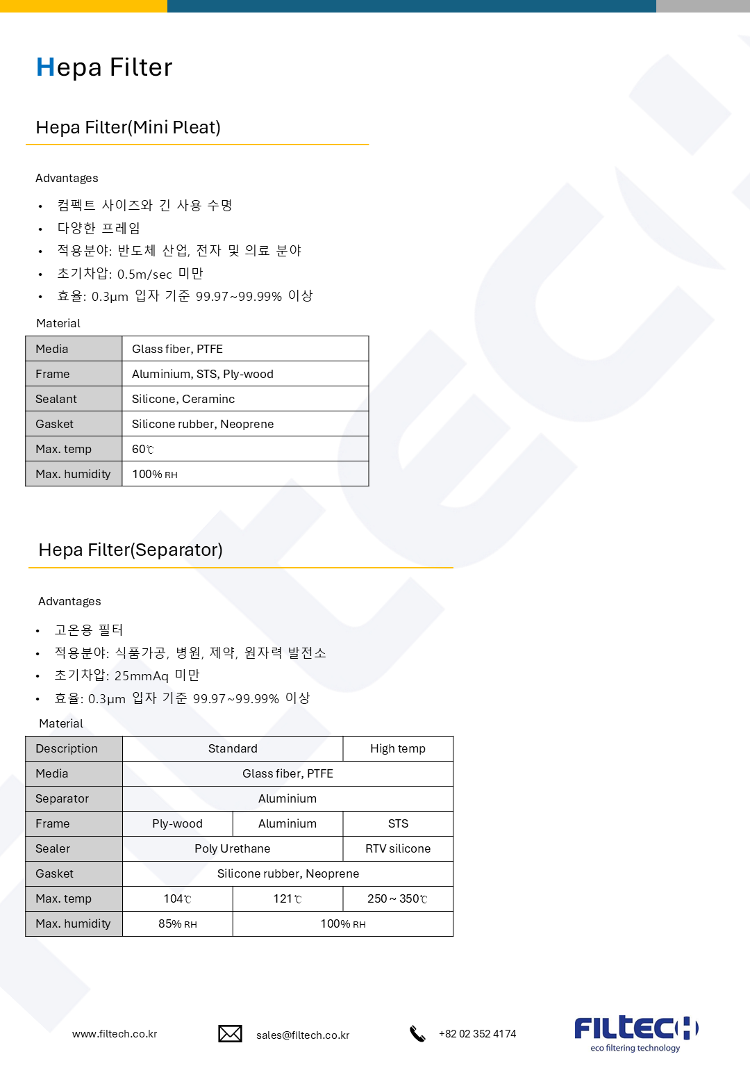 필텍 카탈로그