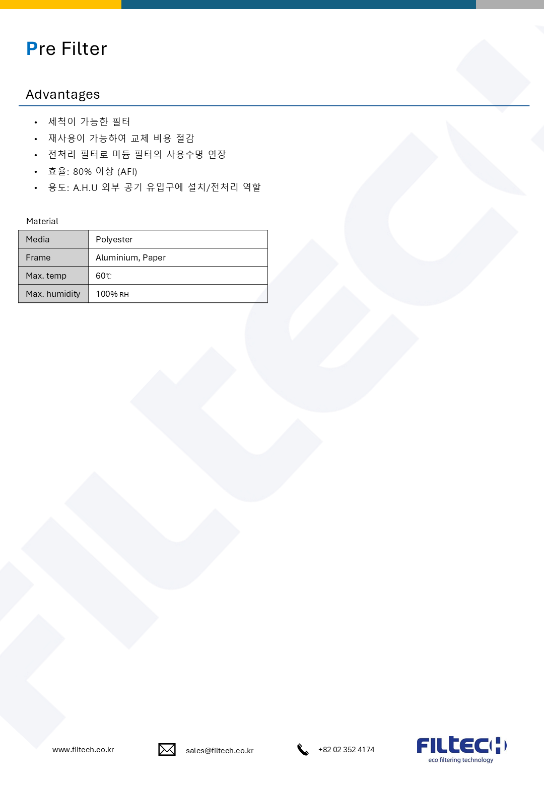 적용 분야: AHU 외기 도입구 전처리 필터